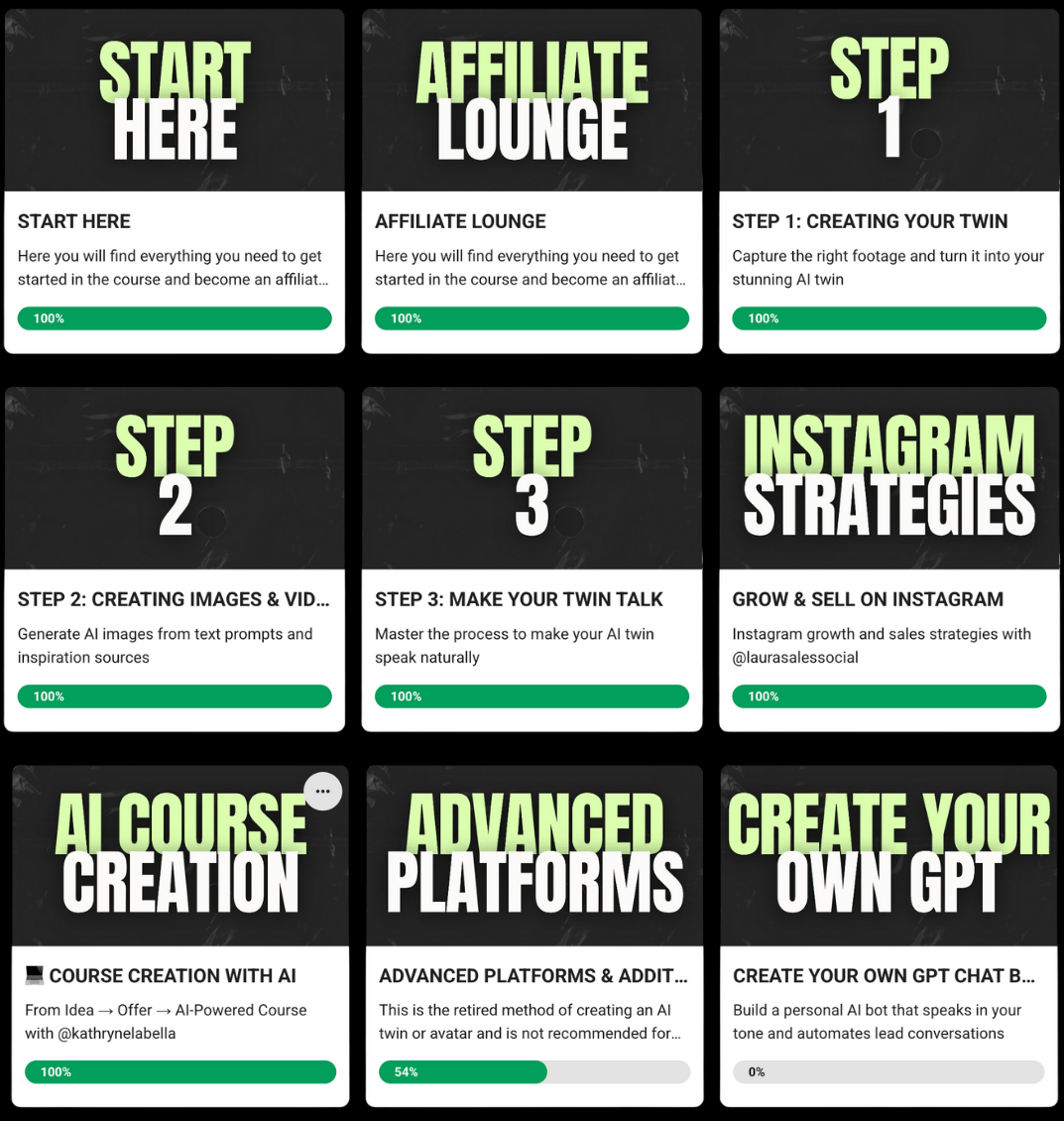 hyper-realistic AI twin (no filming, no makeup, no stress). It is a self-paced course that teaches you how to train your AI twin to create content that looks like you and shows up for your brand 24/7—so you can finally stay consistent without burning out.
